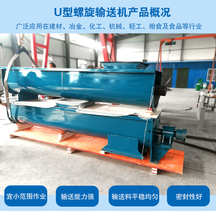 U型螺旋輸送機是螺旋輸送機的一種,適宜(yí)小範圍作業。U型螺旋(xuán)輸(shū)送機因(yīn)其輸送能力強(qiáng),輸送(sòng)料平穩均勻,不會造成(chéng)揚塵(chén)、不對周邊環境進行汙染,且能耗小,密封好(hǎo),利屬於設備,近年來(lái)已經被廣泛應用在建材、冶金、化工、機械、輕工、糧食及食品等國民經(jīng)濟的很多領域。