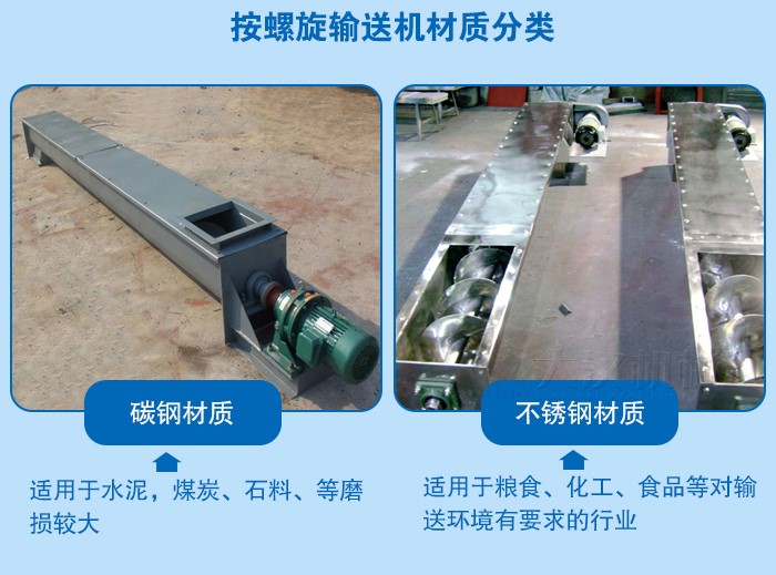 2、不鏽鋼U型(xíng)螺旋輸送機-主要(yào)適用於糧食(shí)、化工、食品等對輸(shū)送環境有要求的行業,清潔度高,並且不會對物料產生汙染,使用(yòng)時間長,但是造價相對較高。
