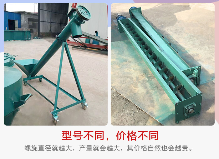 以大漢機械(xiè)為例,其生產(chǎn)的螺(luó)旋給料(liào)機(jī)主要有LS螺旋給料機、U型(xíng)螺旋給料機和無軸(zhóu)螺旋給料(liào)機等,不同型號的螺(luó)旋給料機的管徑、設計等也會有(yǒu)所不同, 所以其價格會有所變動(dòng),型號越(yuè)大,螺旋直徑就越大,產量就會(huì)越大,其價格自然也會越(yuè)貴。所以對(duì)於型號的(de)選擇需要根據用戶輸(shū)送物料來合理選擇。