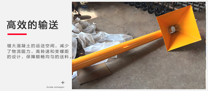 移動式螺旋輸送機采用新型懸掛式(shì)中間吊軸(zhóu)承架,增大混凝(níng)土的運送空間,減(jiǎn)少了物流阻力,加上小直徑,高轉速(sù)和變螺距(jù)的設計,保障順(shùn)暢均勻(yún)的(de)送料。