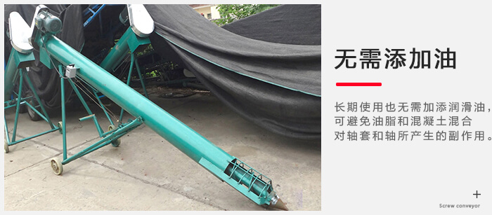 由於移動式螺旋輸送機采用了新穎的中(zhōng)間軸承材料,,既能減摩,耐磨又能自潤滑,即使長期使用也毋需加添潤滑油,可避免油脂和混凝土混合對軸套和軸所產生的副(fù)作用。