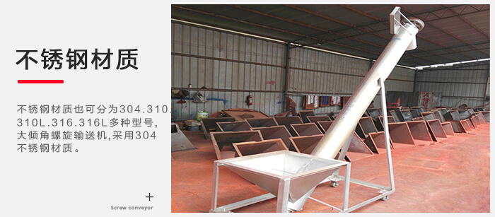 不鏽鋼材質也可分為304.310.310L.316.316L多種型號,大傾角螺旋輸送機,所有的機型都可以(yǐ)采用(yòng)304不鏽鋼材質,但是當(dāng)輸送距離長時,表麵積增大,打磨難度增加,一般會選擇噴(pēn)砂,從視覺上就不會像常見(jiàn)的不鏽鋼那樣光亮,但質量不會(huì)有影響。