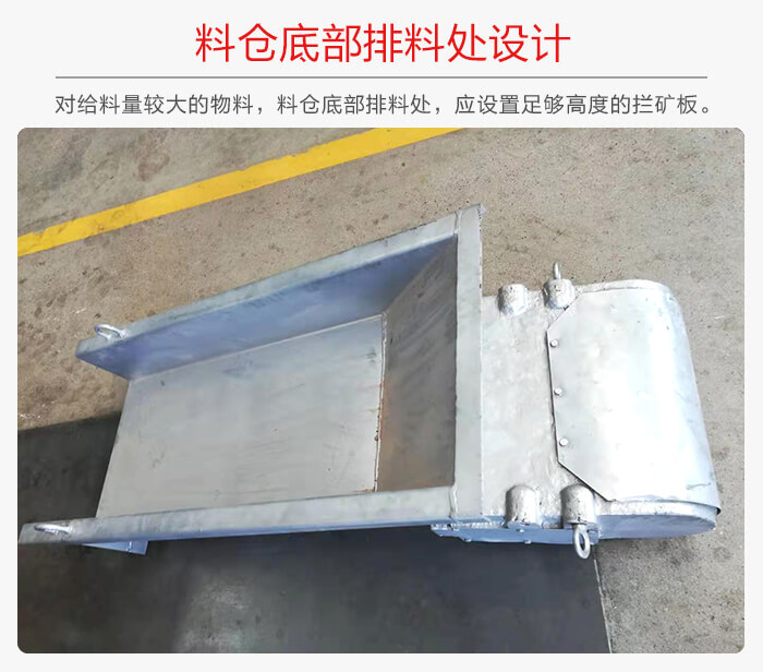 對給料(liào)量較大的物(wù)料,料倉底部排料處,應設置足夠高度(dù)的攔礦板; 為不影響給料機的性能(néng),攔礦板不得固定在槽體上。