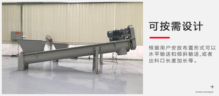 可以根據用(yòng)戶安放布置形式可以水(shuǐ)平輸送和傾斜輸送,也(yě)可以將出料口按照用(yòng)戶要求的角度生產,如出料口要(yào)求傾斜多(duō)少度,或者出料口長度(dù)加長等。