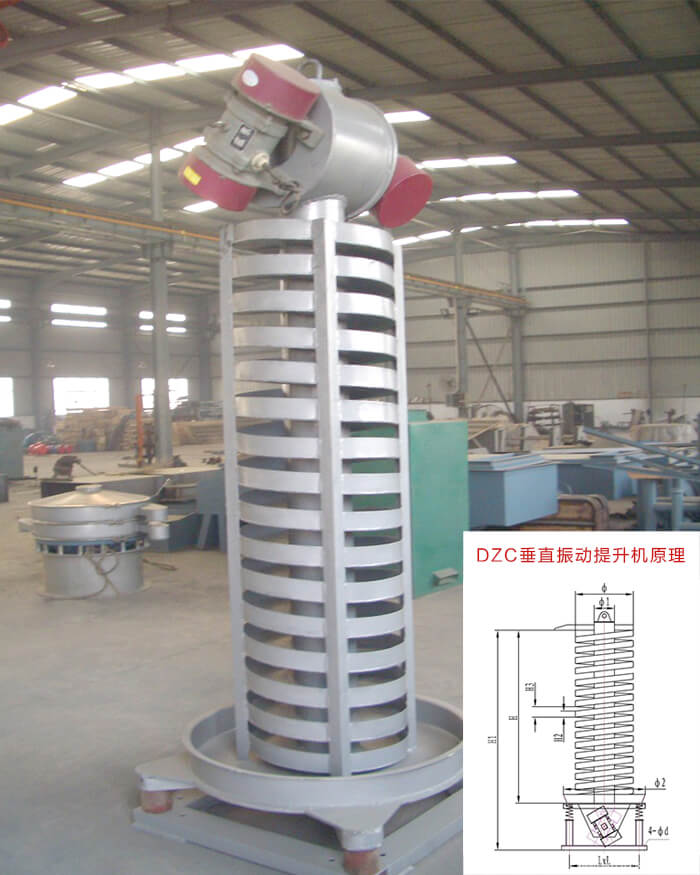 DZC係列垂直振動提升機是一種新型的垂直振動輸送(sòng)設備,本機對一切顆粒狀(zhuàng)、塊狀、粉狀的固體物料(粘度不大)都可以(yǐ)輸送。那麽DZC垂直振動提升機的原理及其特點是什麽呢?