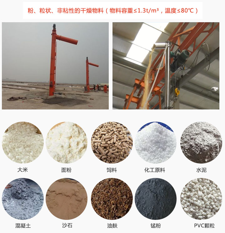 垂直螺旋輸送機可輸送大米,麵粉,飼料、化工原料、水泥、混凝土等粉、粒狀、非(fēi)粘性的幹燥物料(物料容重≤1.3t/m³,溫度≤80℃);在輸送同時也可對物料(liào)進行幹燥和冷卻等功(gōng)能。
