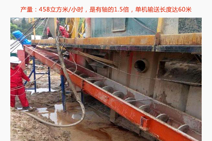 輸送量大,距離長:無軸螺旋輸送機產量達458立方米/小時,是有軸的1.5倍,扭矩(jǔ)可達4000N.m,單機輸送(sòng)長度達60米。