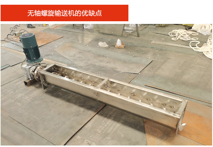無軸螺旋輸送機主要用於廚餘垃圾,汙泥等具有纏繞性/粘性/含水量大的物料輸送,那麽該產品優缺(quē)點是什麽呢?