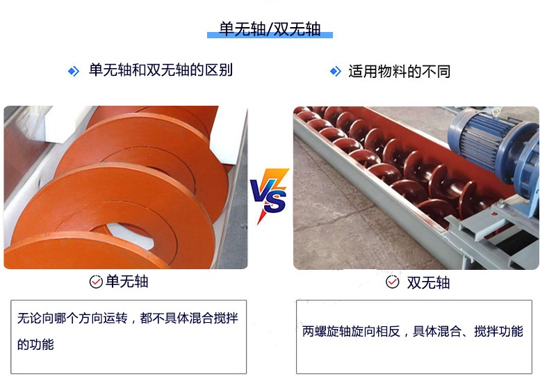 是指分別有(yǒu)兩個無軸螺(luó)杆的無軸螺旋輸送機,一根為左旋,另一根為右旋,在輸送物料的同時還具有混合、攪拌、粉碎等(děng)功能。