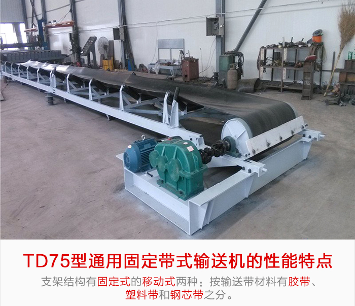TD75通用固定帶式輸送機由於輸送(sòng)量大、結構簡(jiǎn)單、維護(hù)方便、成本低、通用性強等優點,而被廣泛地應用在(zài)冶(yě)金、礦山、煤(méi)炭、港口(kǒu)、交通、水電、化工(gōng)等部門進行裝車、裝船、轉載或堆積各(gè)種常溫狀態的鬆散密度為500~2500kg/m3各種散狀物料或成(chéng)件物品。