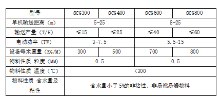 注(zhù):1.輸送產量是以散體比重為1.6噸(dūn)/米3,溫度小於300℃的水泥熟料測定。