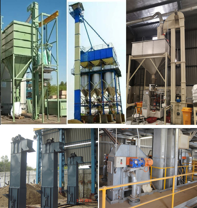 糧(liáng)食加工:用於將穀物(wù)、米粉、飼料等物料從清(qīng)理、研磨、篩分等工序提升到儲存倉或包裝設備。