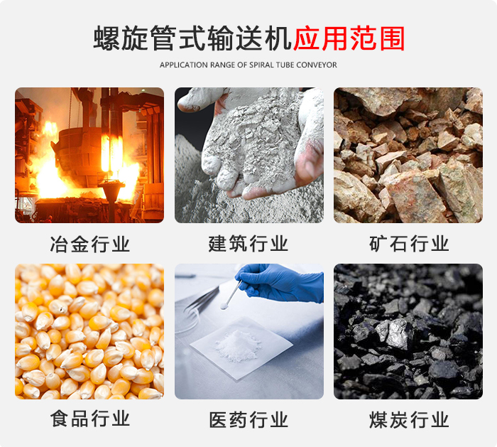 螺旋輸送機(jī)主(zhǔ)要用於(yú)糧(liáng)食、建材、冶金、化工、電力等行業對粉(fěn)末、顆粒或小(xiǎo)塊(kuài)狀物料進行輸送(sòng)任務,如水泥、混凝土、飼料、化肥(féi)、粉煤灰等(děng)物料(liào),不(bú)宜輸送易變質的、粘性大的、塊度大的及易結塊的物料。