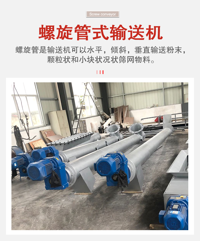 螺旋管是輸送機可以水平,傾斜(xié),垂(chuí)直輸送粉末,顆粒狀和小塊狀況狀篩網物料,廣泛用(yòng)於糧食,建材,化工,機械製(zhì)造,交通運輸業(yè)等行業。