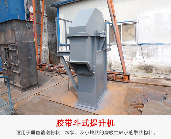 膠(jiāo)帶鬥式提升機適用(yòng)於垂直(zhí)輸送粉狀、粒狀、及小塊狀的磨吸性較小的散狀物料,如糧食、煤、水泥、碎(suì)礦石等,提升高度不超過40m。TD型按JB3926-85《垂(chuí)直鬥式提升機》標準設計製造,目(mù)前國內常用的鬥式提升機均為垂直式(shì),較新型。膠帶(dài)鬥式提升機備有四種料鬥Q型(淺鬥(dòu))、H型(弧底鬥)、ZD型(中深鬥)SD型(深鬥(dòu))。